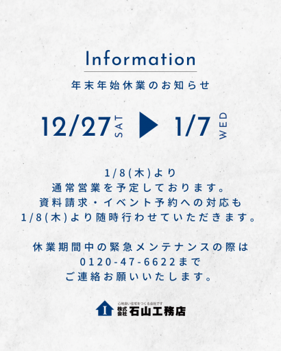 年末年始休業のお知らせ
