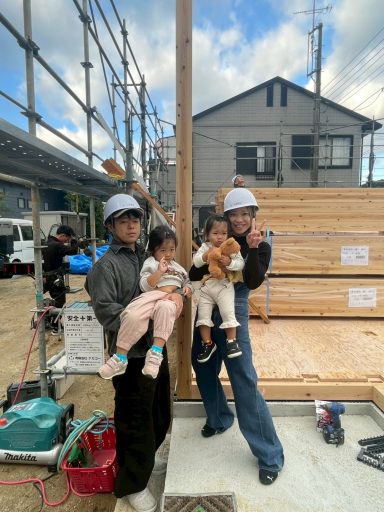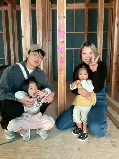 朝一柱を1本お施主様に建てていただき、上棟スタート♡
