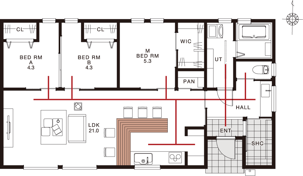 廊下をなくして空間を無駄なく活用。