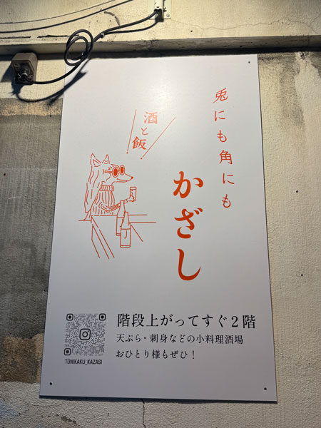今回のひとり居酒屋は「兎にも角にも かざし」