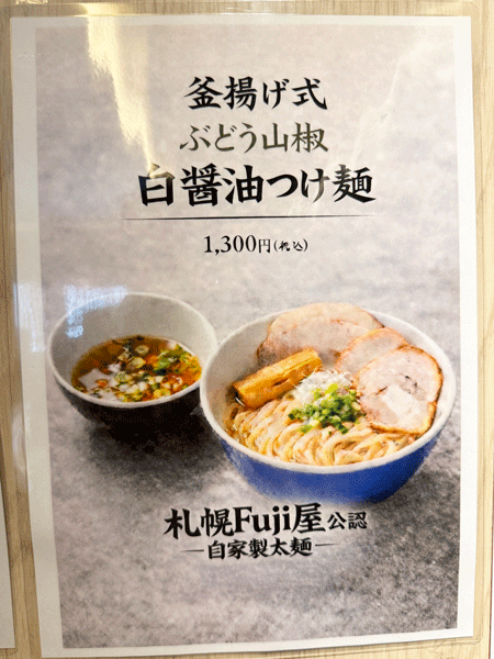 「釜揚げ式 ぶどう山椒 白醤油つけ麺」 1300円