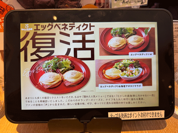 「エッグベネディクト 復活」という画面。