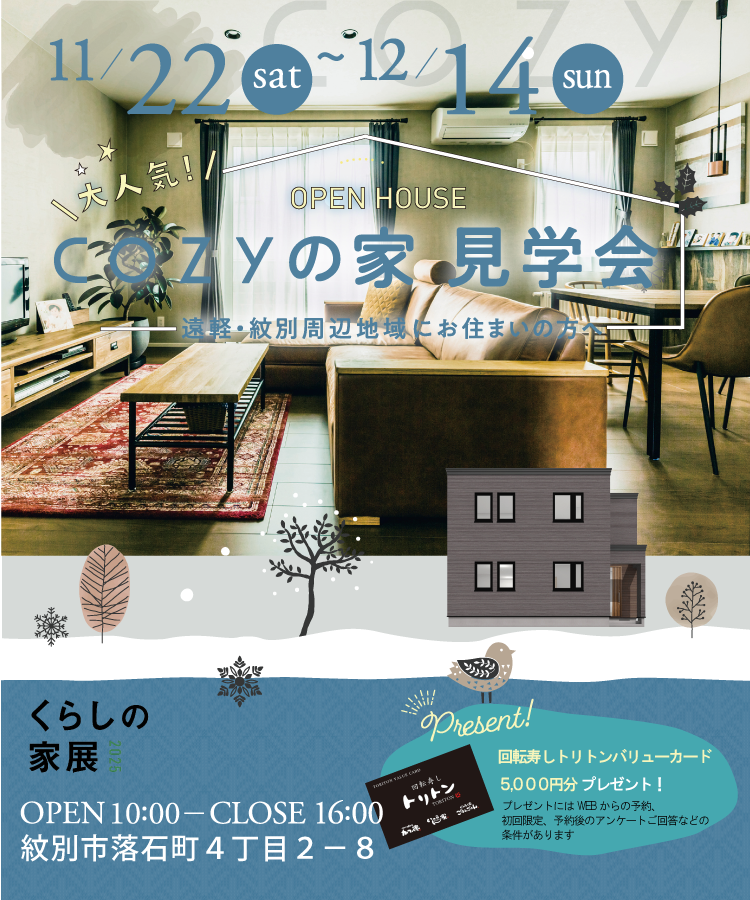 イベント名【11、12月開催】COZYの家見学会【紋別市】