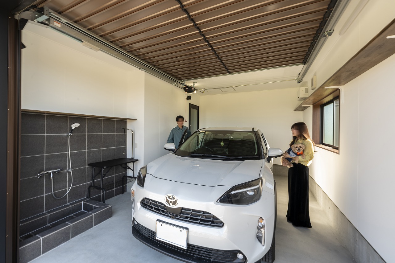 ガレージには、お散歩後のペットの足を洗うのにも便利な洗い場も設置しています。ペットと暮らすご家庭にとっても「こんなの欲しかった!」と思えるポイントではないでしょうか。