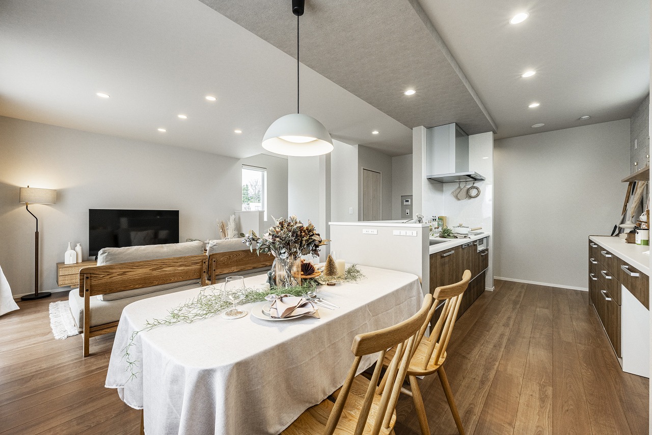 キッチン横にダイニングを配置すると、料理を運ぶ・片付ける動きが短く済み、食事の準備や片付けが格段にラクになります。