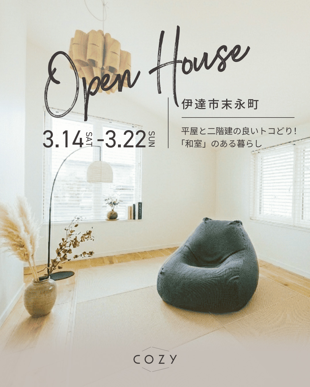 イベント名【3月開催】平屋と二階建の良いトコどり!「和室」のある暮らし