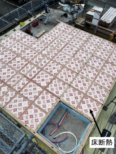 床下からの冷気や湿気を遮断するために、床部分に断熱材を施工する工法。