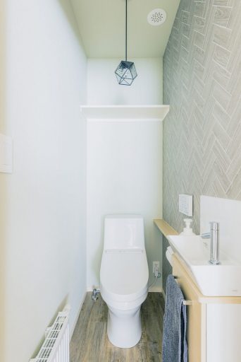 ↑事例のトイレは普通の木目ではなく、ヘリンボーン柄なのも魅力的ですね!
