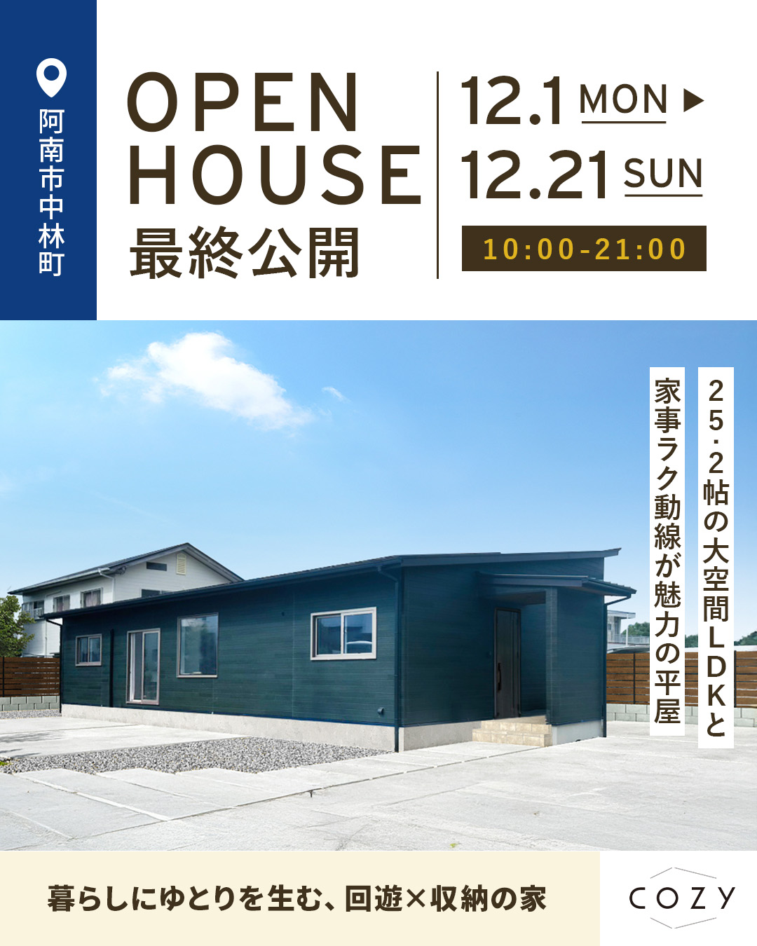 【最終見学会】回遊×収納の家(阿南市中林町)