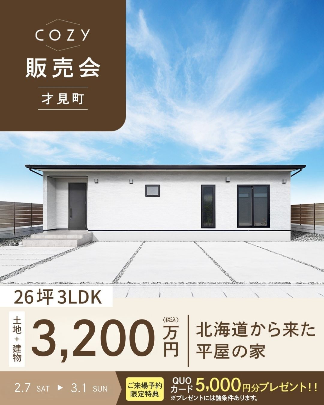 イベント名【プライスダウン販売会】北海道から来た平屋の家